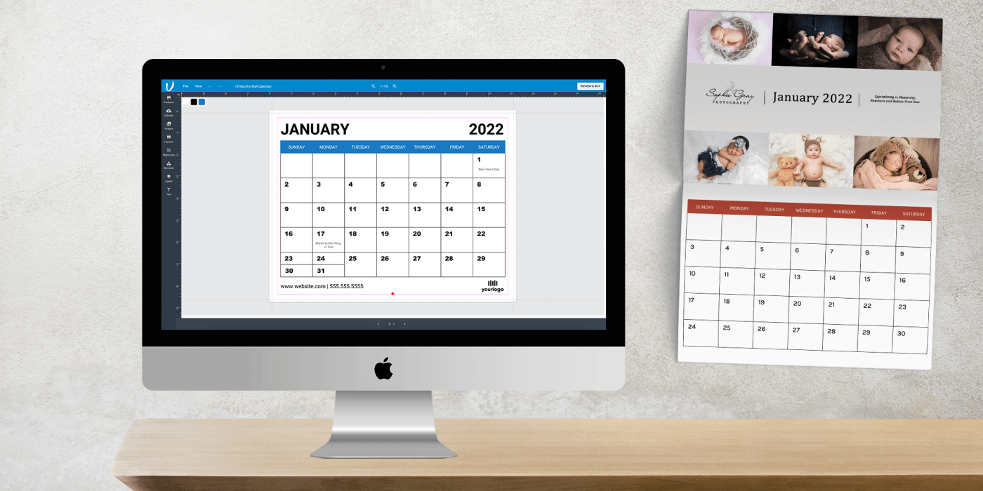 To access this tool, visit our wall calendars product page and look below the pricing estimate calculator. They’re you’ll find a button that says “CREATE YOUR DESIGN ONLINE.” Click the button (or follow the link in this article) to check out our new calendar editor!